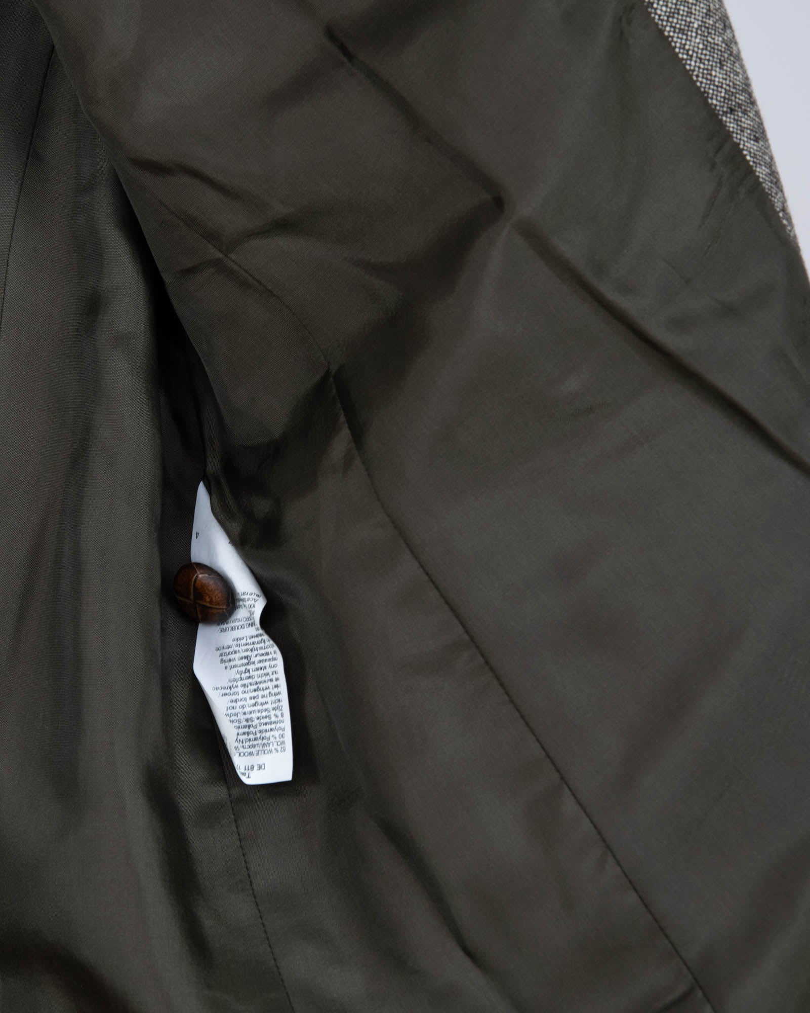 Skład: 62% wełna, 8% jedwab, 30% poliamid. Podszewka 100% acetat.