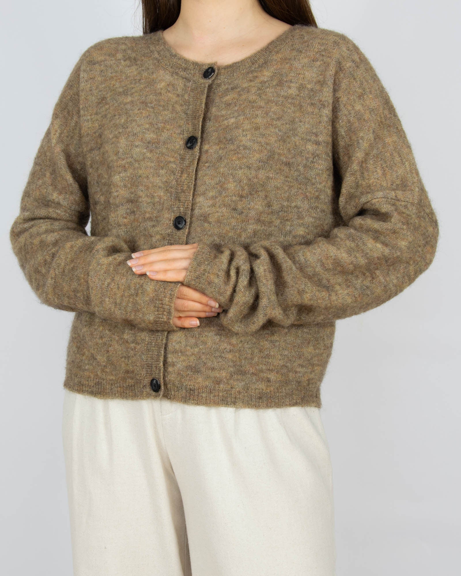 Brązowy (kid moher + merino) kardigan marki MOODS OF NORWAY.
