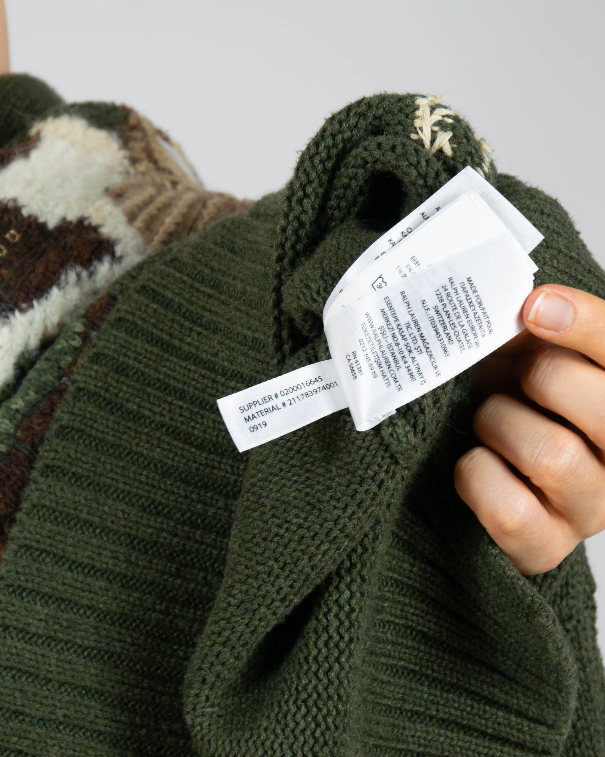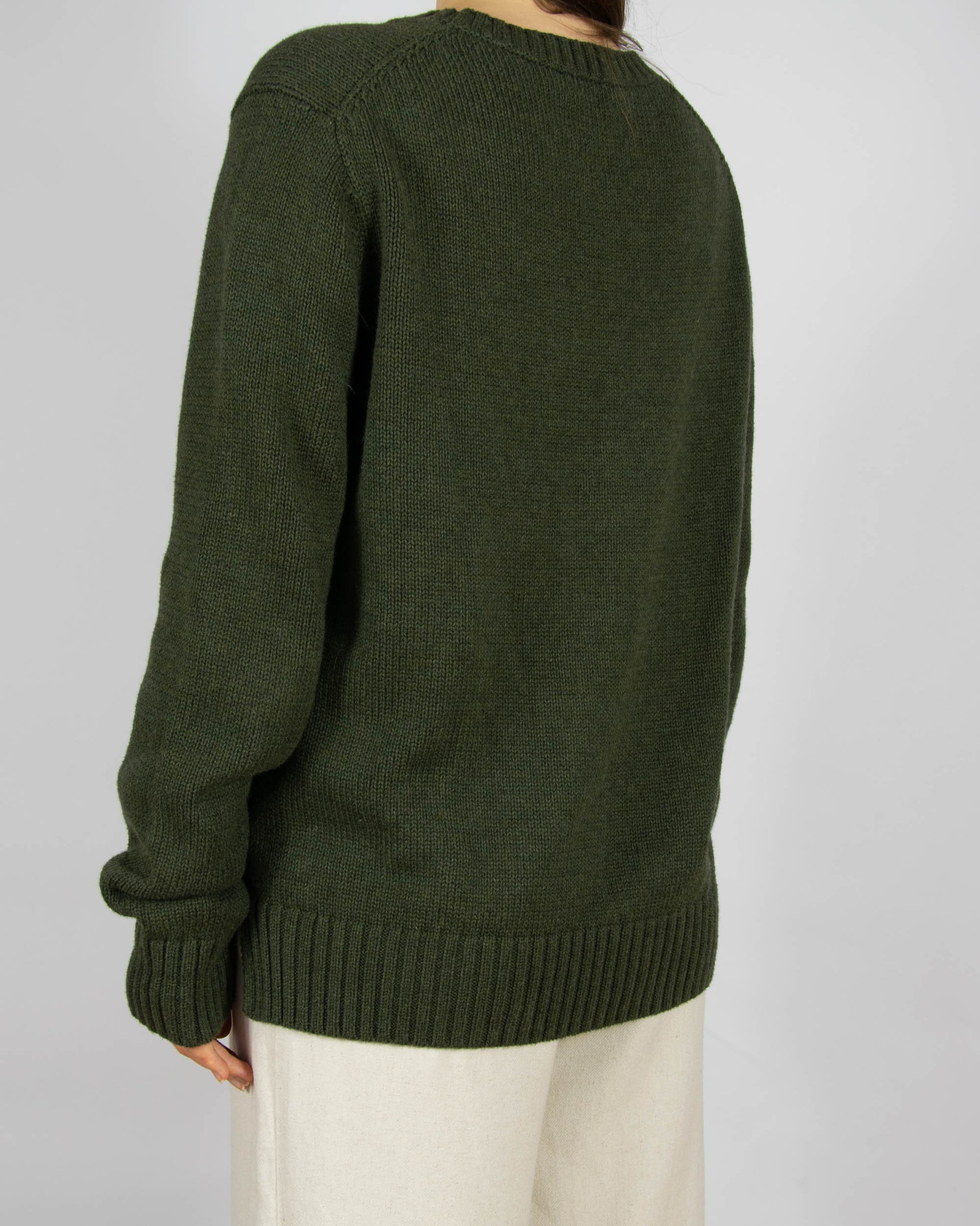 Ciemnozielony bawełniany sweter marki premium Ralph Lauren z kultowej linii Polo Bear. Sweter wykonany z bawełny, natomiast miś w większości wykonany z wełny.