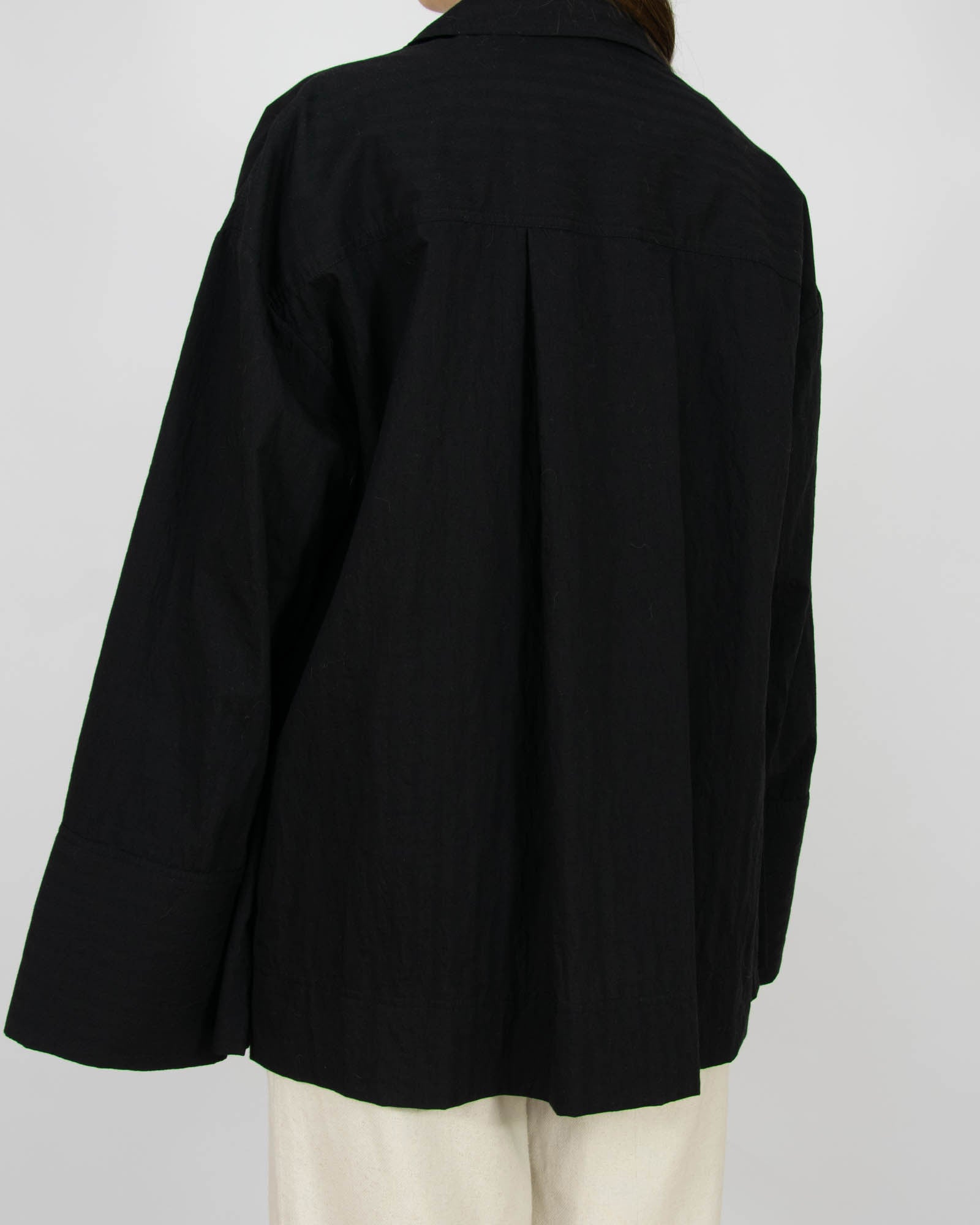 Czarna bawełniana (organic) koszula luksusowej marki DAGMAR (House of Dagmar). Koszula o kroju oversize z szerokimi rękawami. Cena tej koszuli na stronie marki wynosiła 1330 zł.