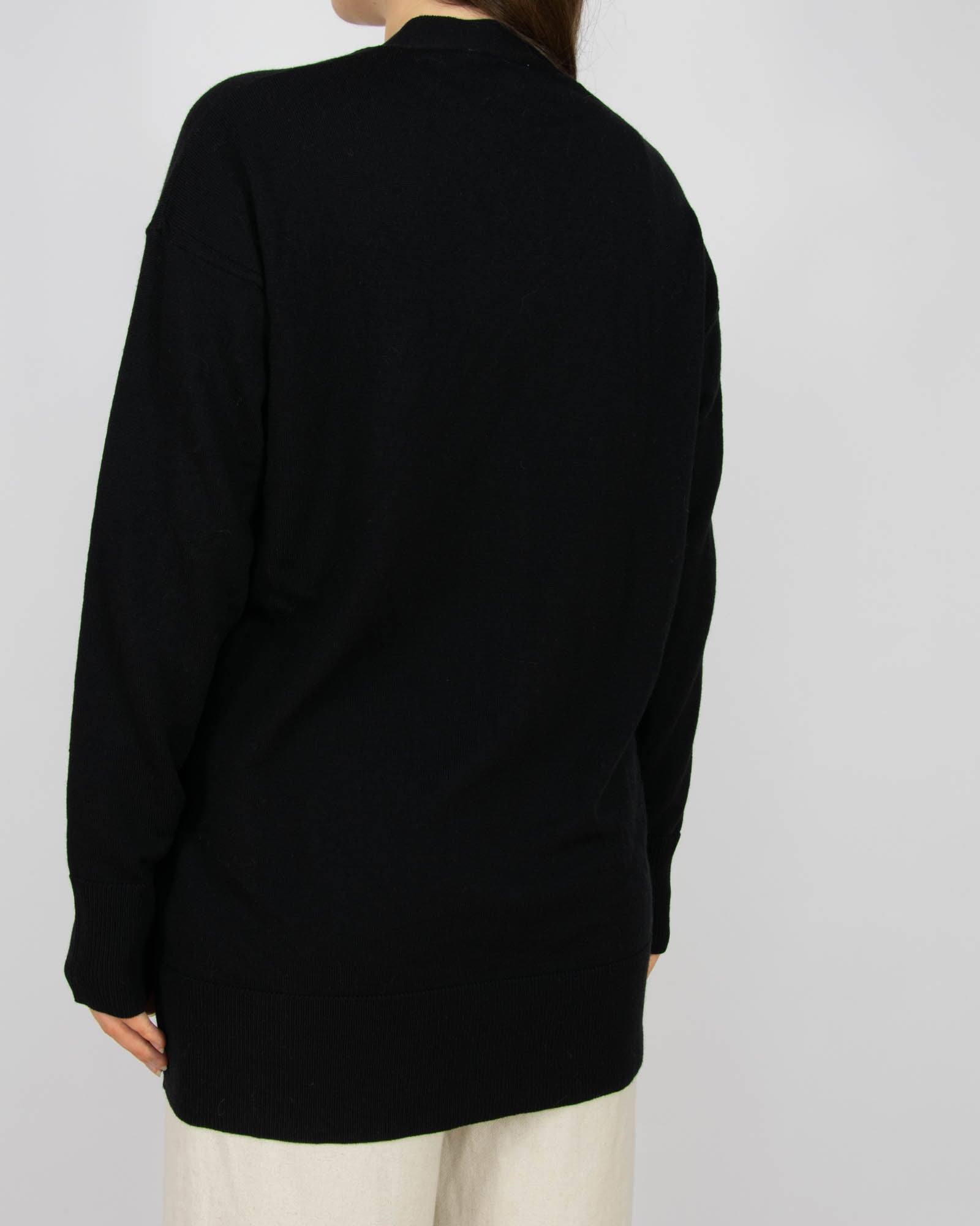 Czarny wełniany (merino extra fine) kardigan Cubus - S/M