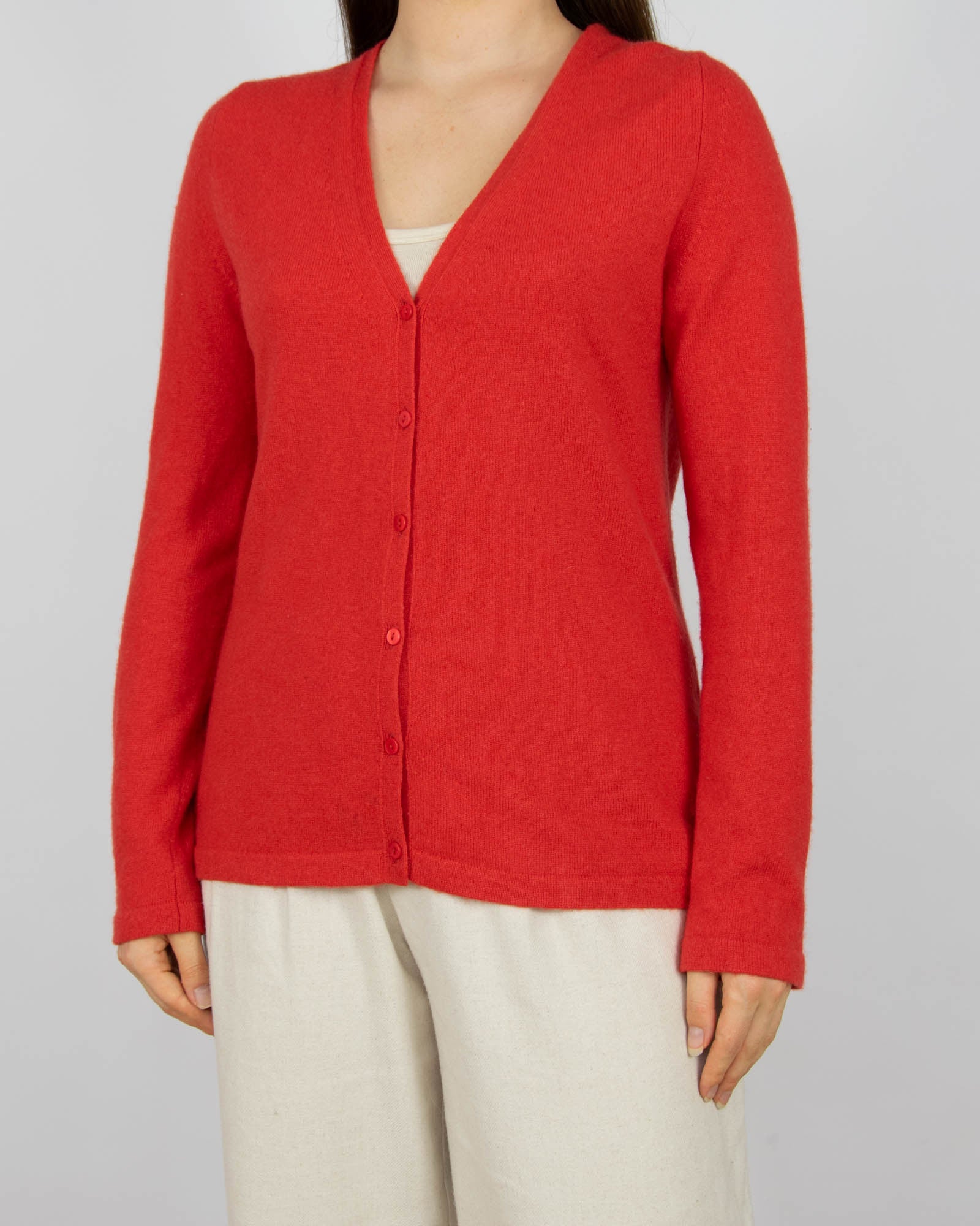 Czerwony kaszmirowy kardigan marki C&A Premium.