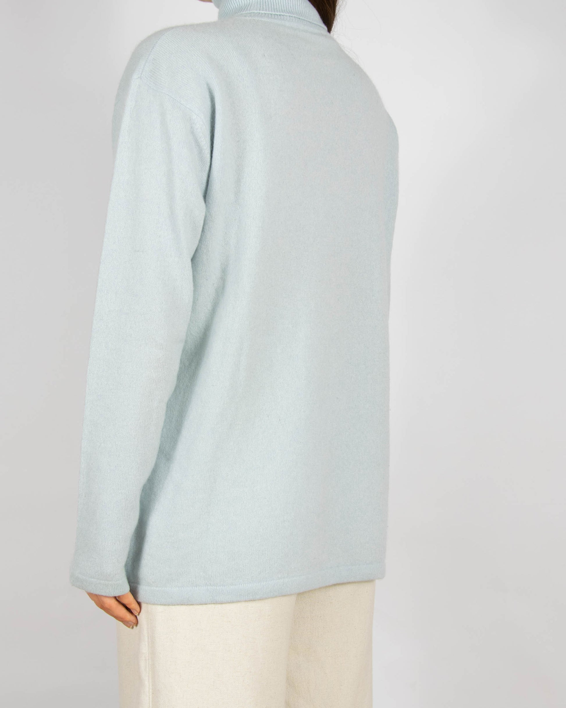Jasnoniebieski kaszmirowy sweter z golfem - L