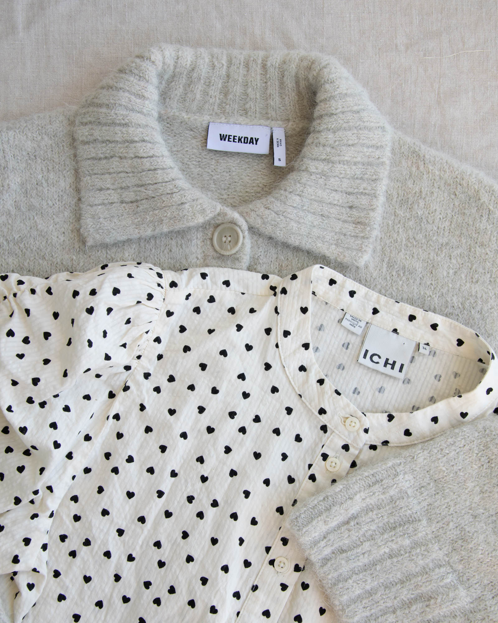 Kremowo szary wełniany (alpaka) kardigan Weekday - S/M