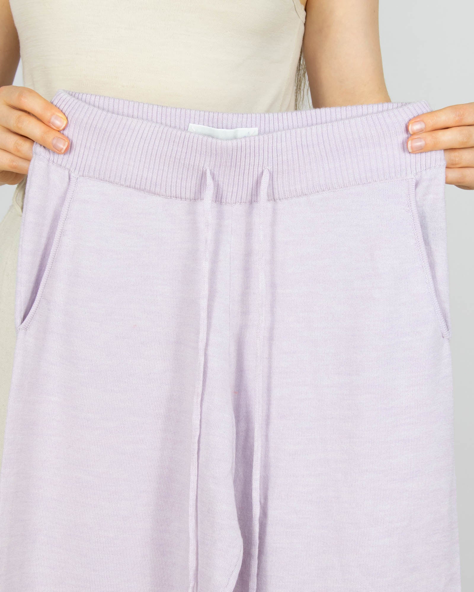 Liliowe wełniane (merino) spodnie dresowe z wysokim stanem SKAPPEL - XS/S