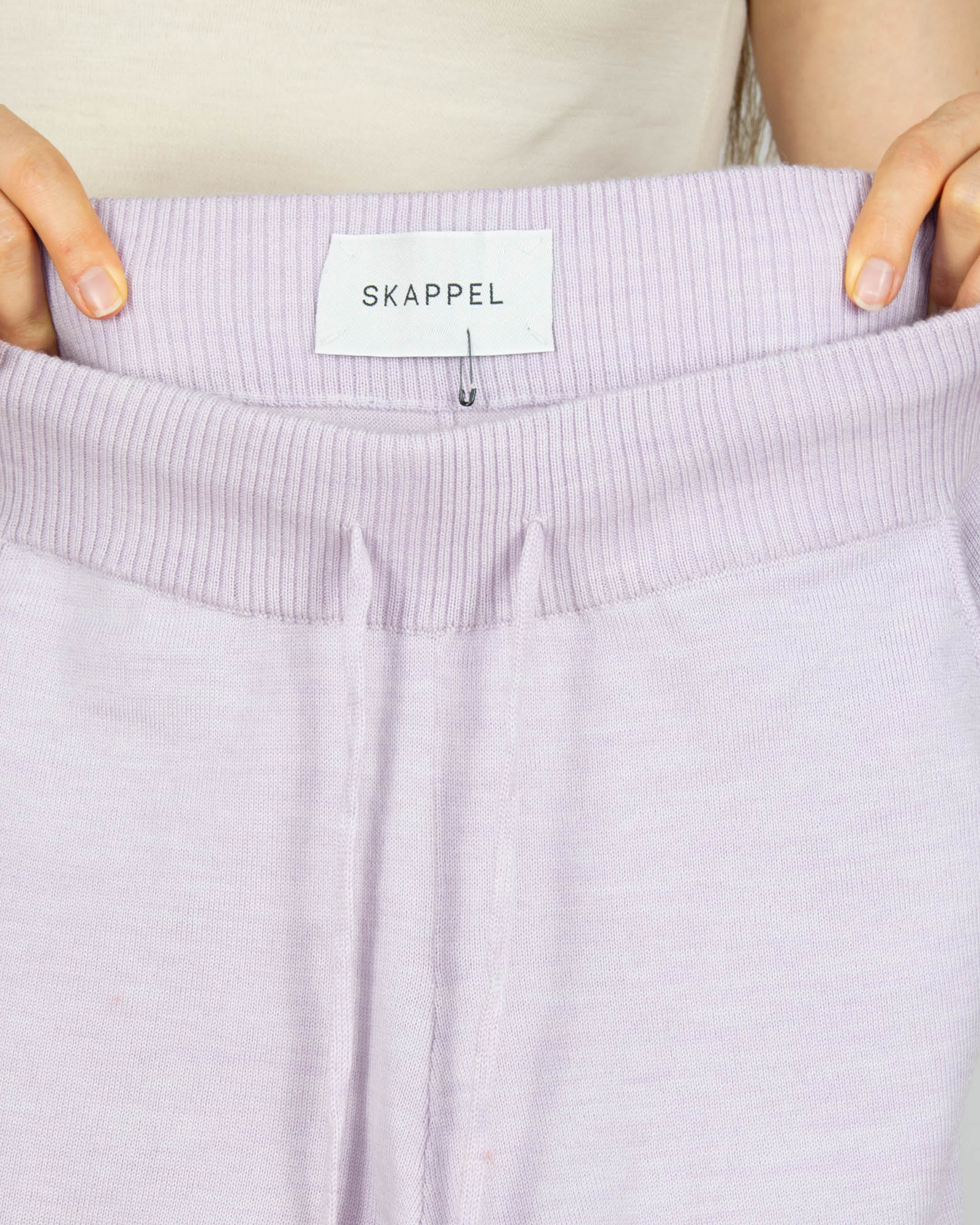 Liliowe wełniane (merino) spodnie dresowe marki SKAPPEL.