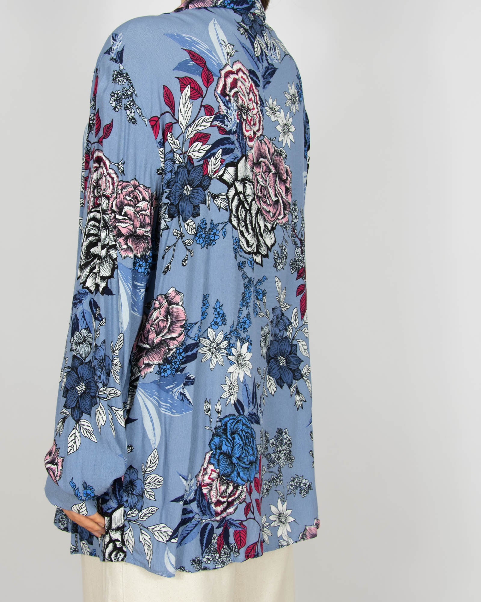 Niebieska wiskozowa koszula w kwiaty GESTUZ - XL/XXL