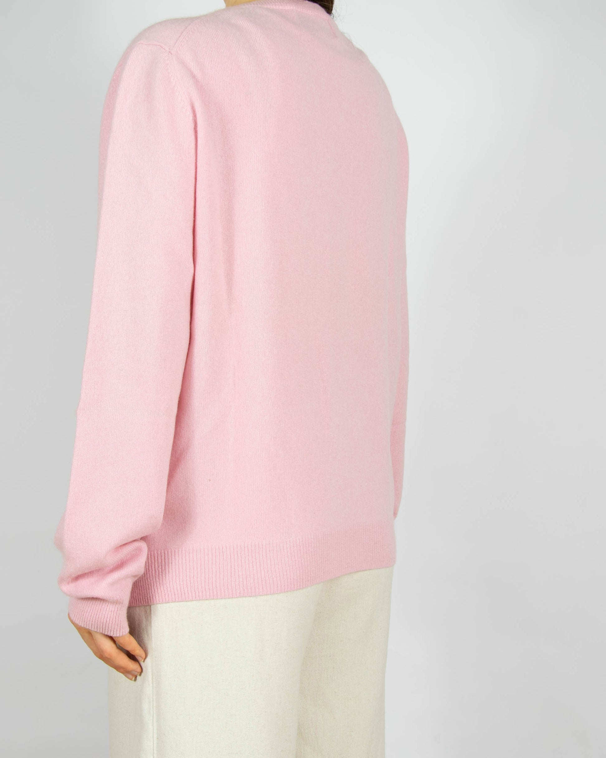 Pastelowy różowy kaszmirowy kardigan. Bardzo miękki i przyjemny w dotyku. Brak metki z marką, jest metka ze składem.