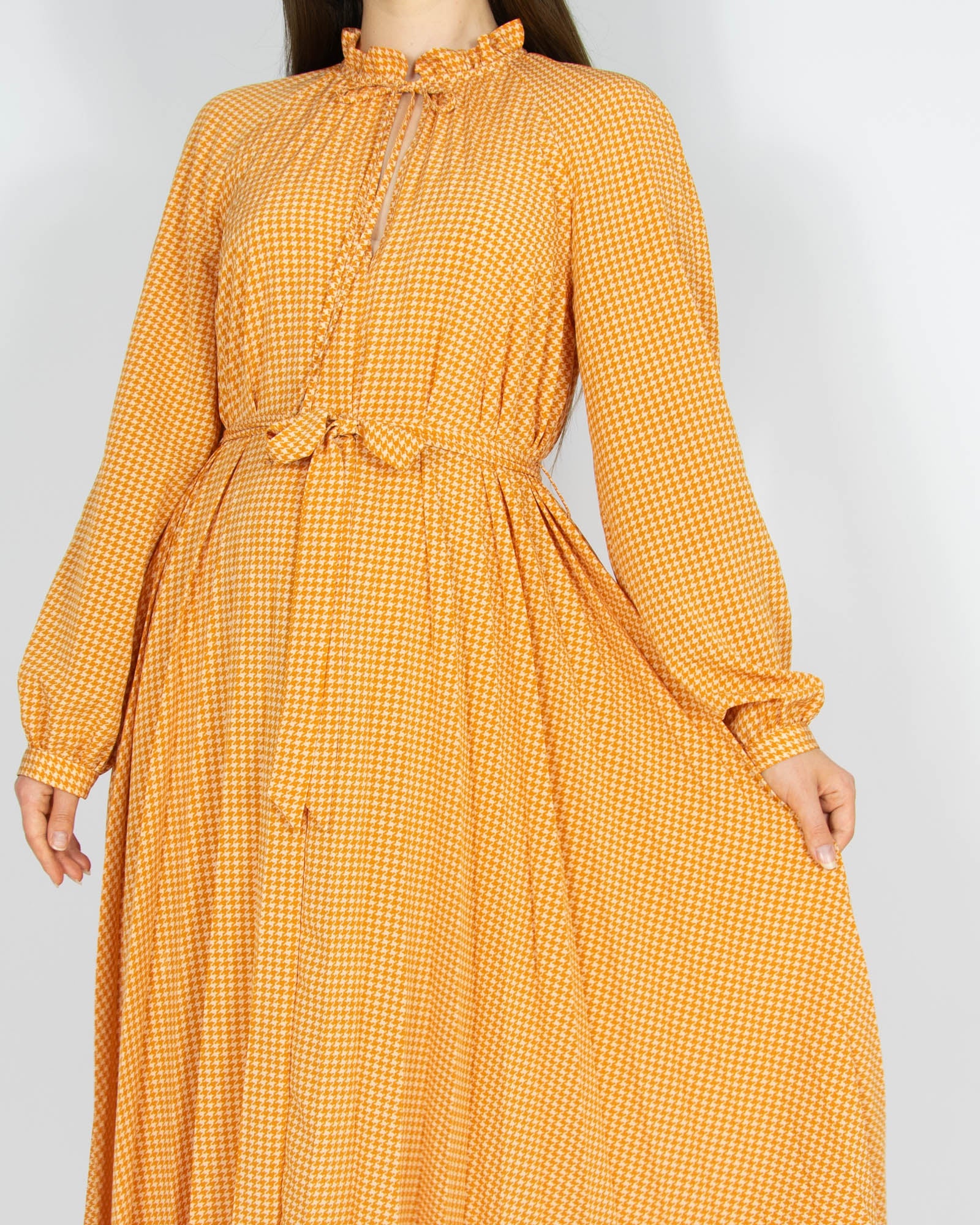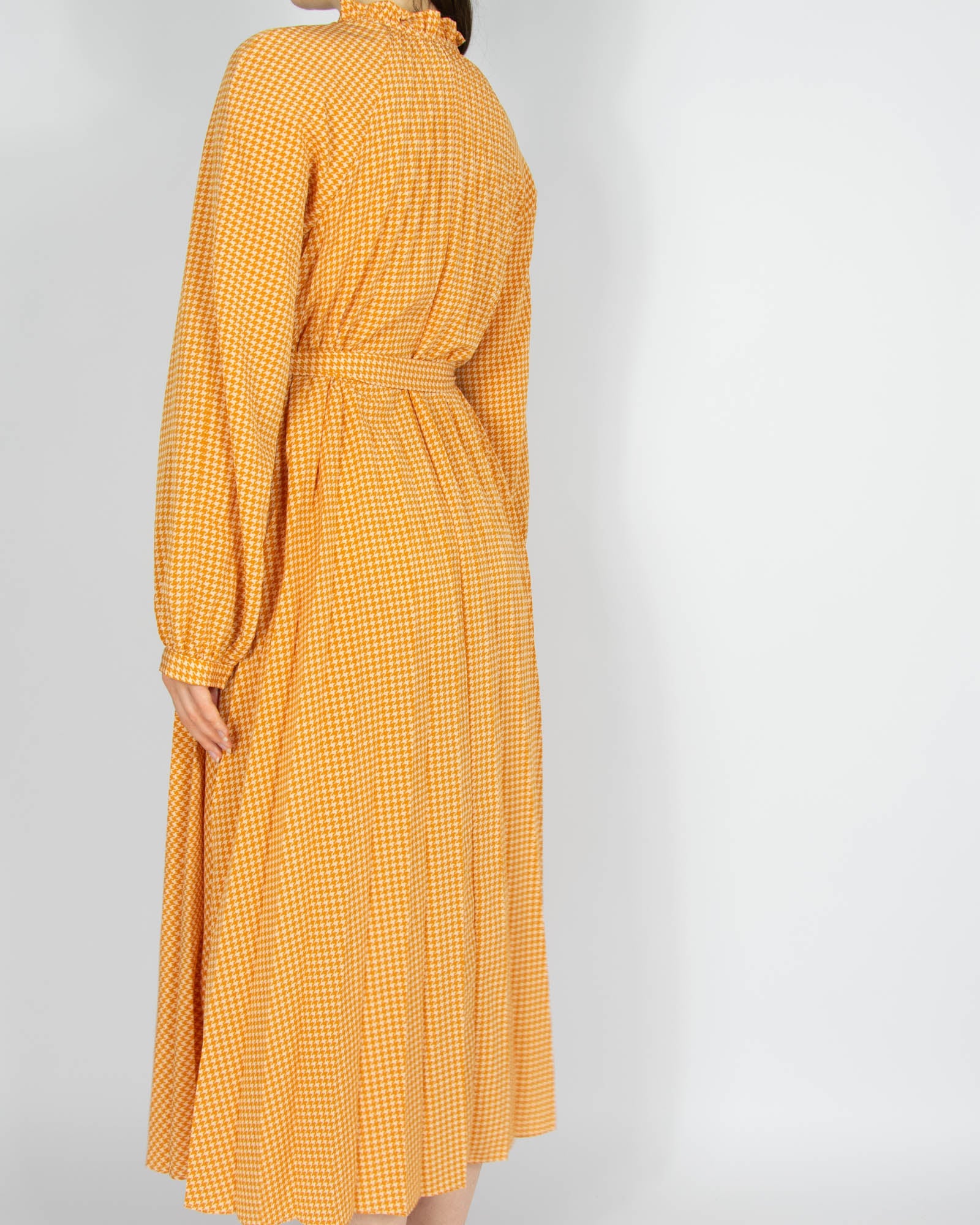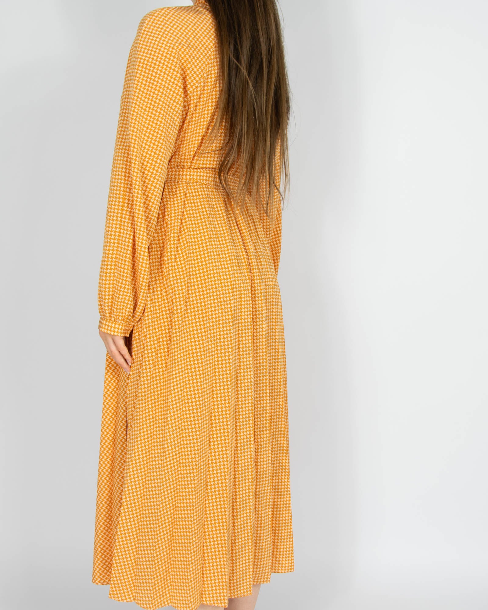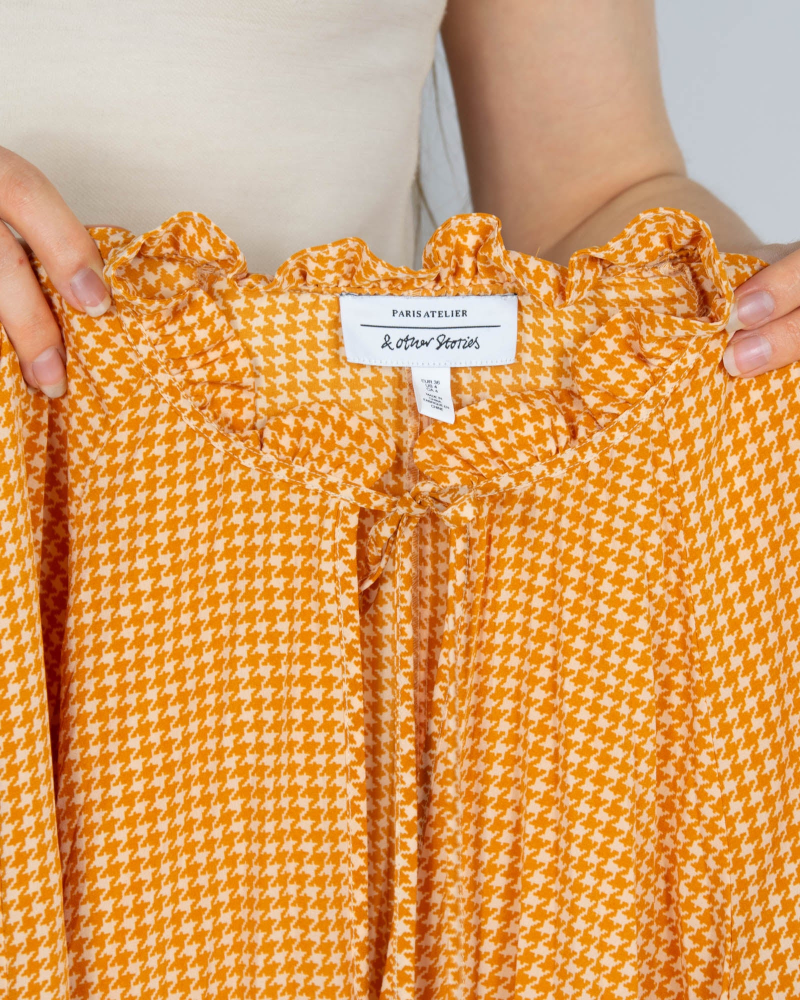 Pomarańczowa wiązana plisowana sukienka w pepitkę marki & other stories.