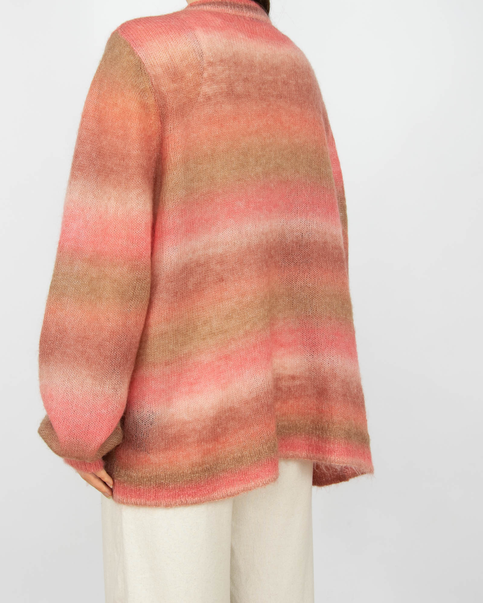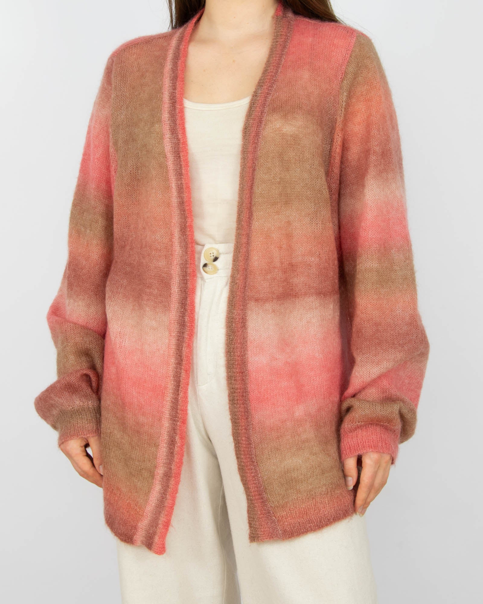 Różowy gradientowy (kid moher + merino) kardigan duńskiej marki premium Philosophy Blues Original.