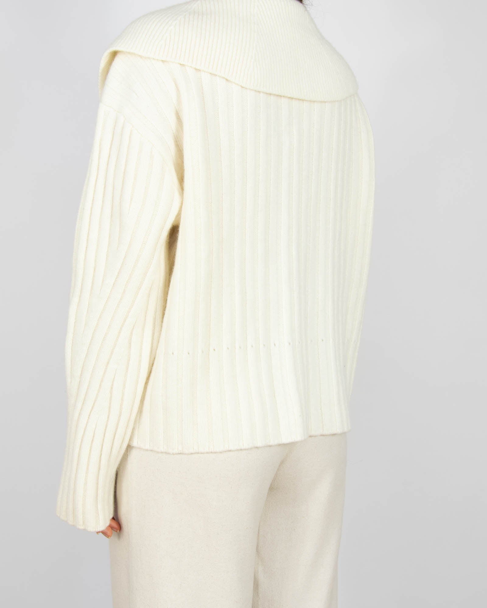 Śmietankowy wełniany sweter z kołnierzykiem H&M Premium - M