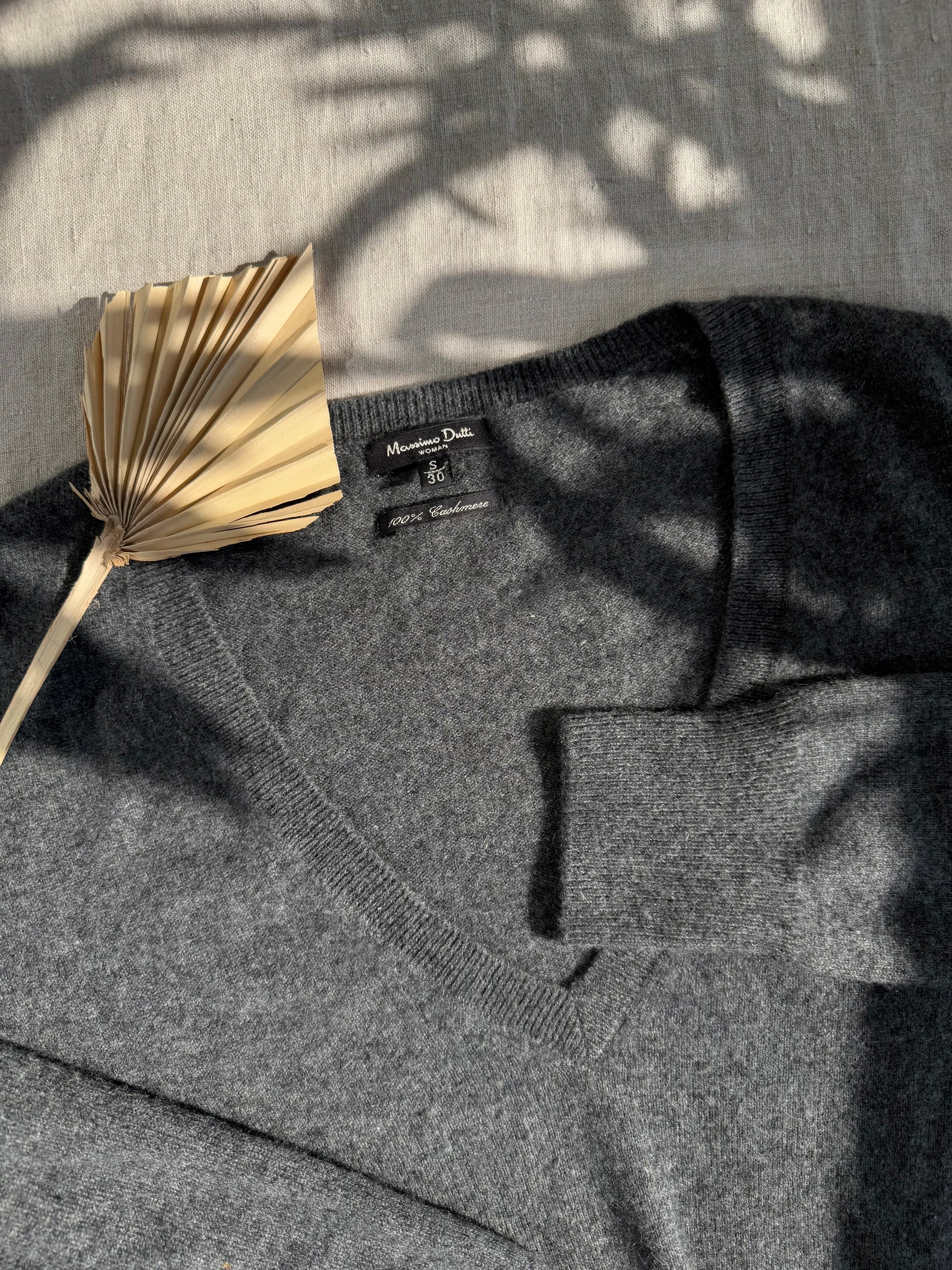Szary kaszmirowy sweter hiszpańskiej marki Massimo Dutti. Sweter jest bardzo miękki i przyjemny w dotyku.