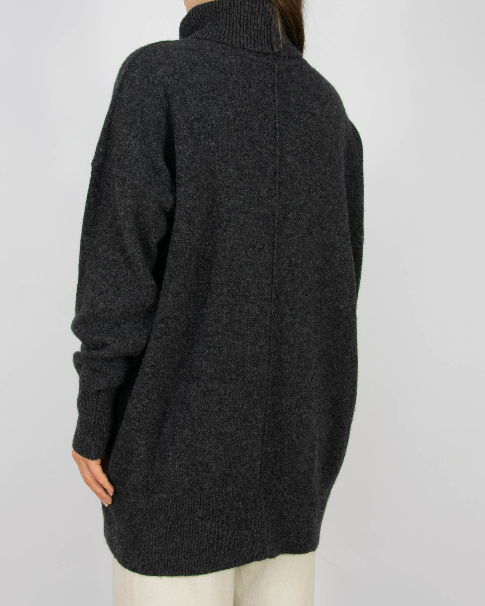 Szary wełniany (wełna jagnięca) sweter oversize z golfem Cubus - S/M